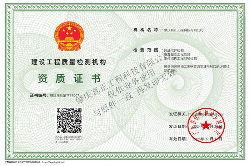 建設(shè)工程檢測質(zhì)量機構(gòu)資質(zhì)證書